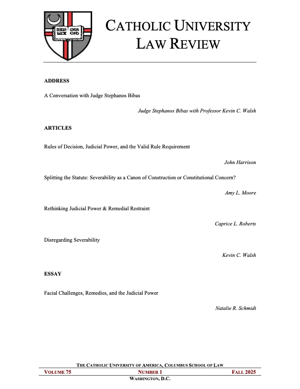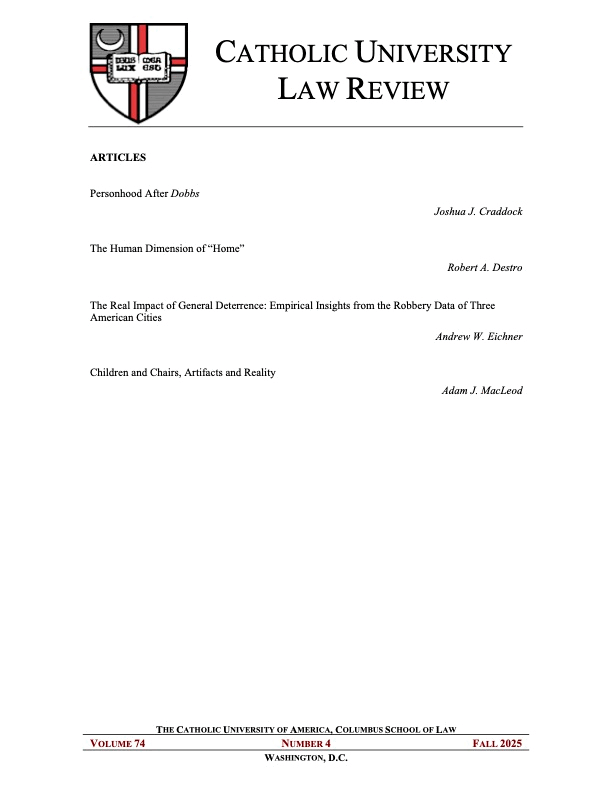 The Catholic University Law Review also regularly publishes Notes and Comments written by its student members and provides student editors and contributors with valuable skills to further prepare them for their future legal careers.